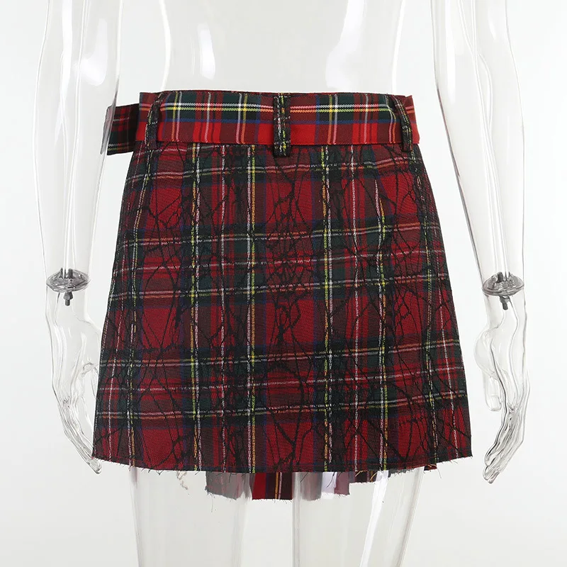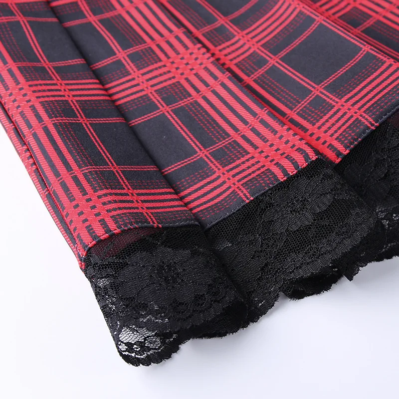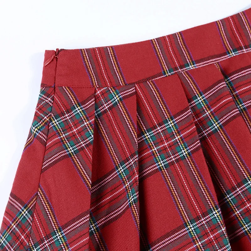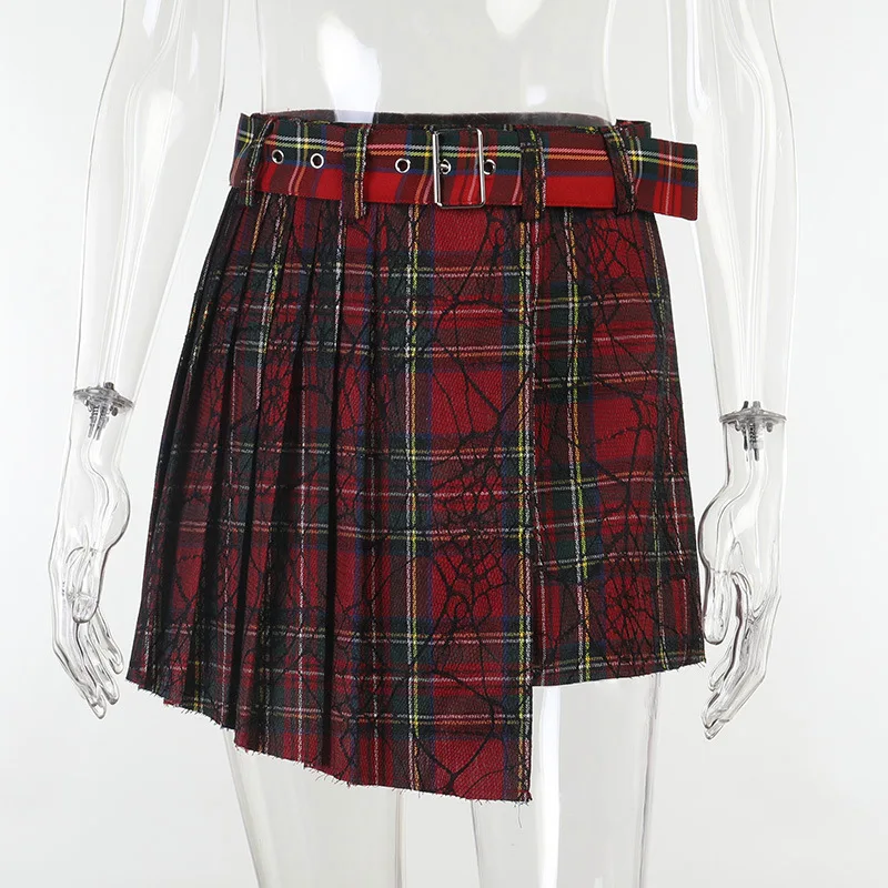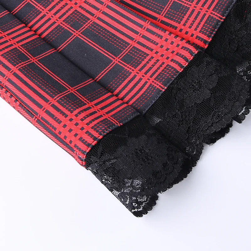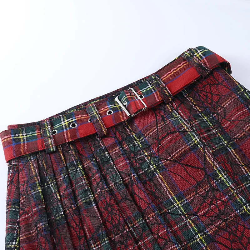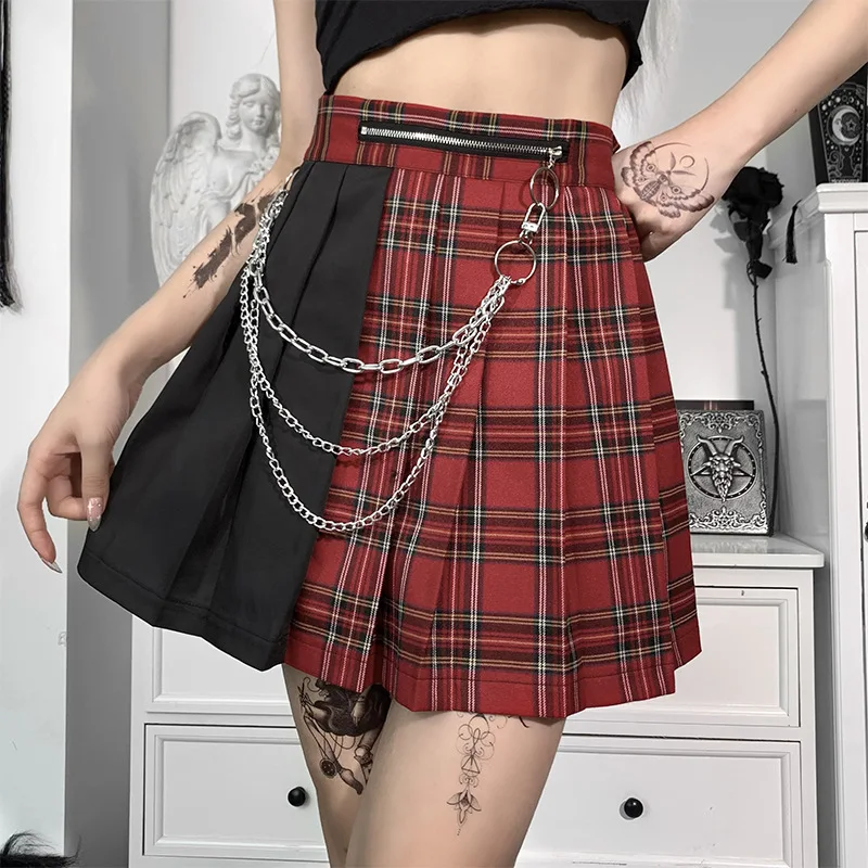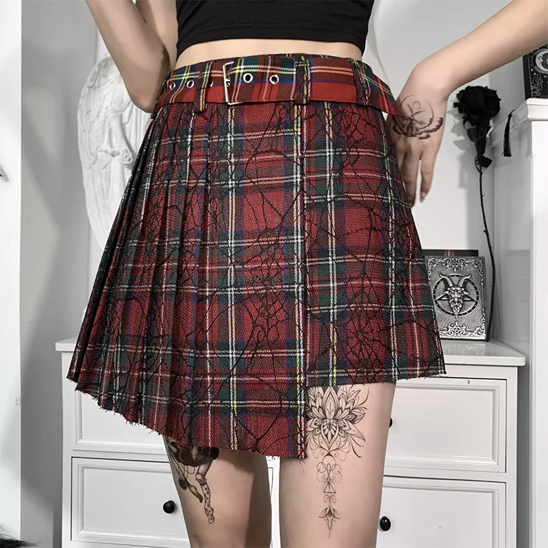 Cinto punk de retalhos vermelho xadrez saia goth vintage sexy jk a line saia plissada alta espera mini saia harajuku grunge y2k