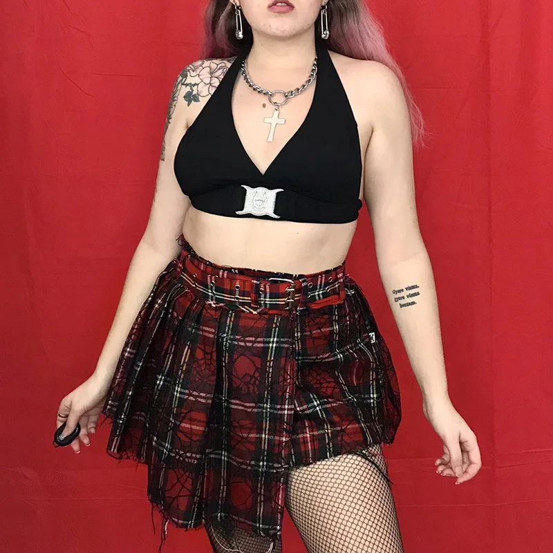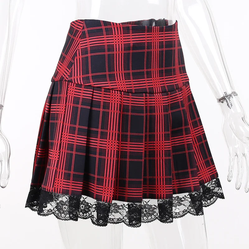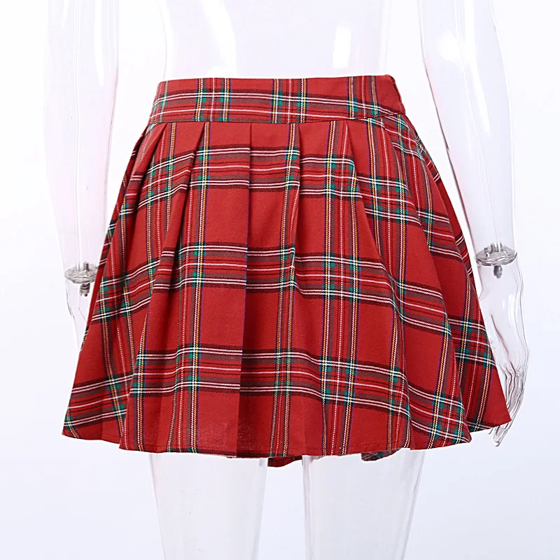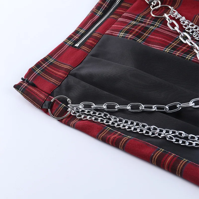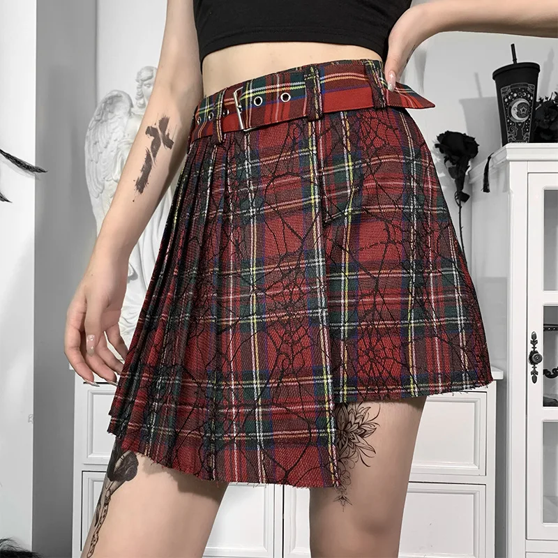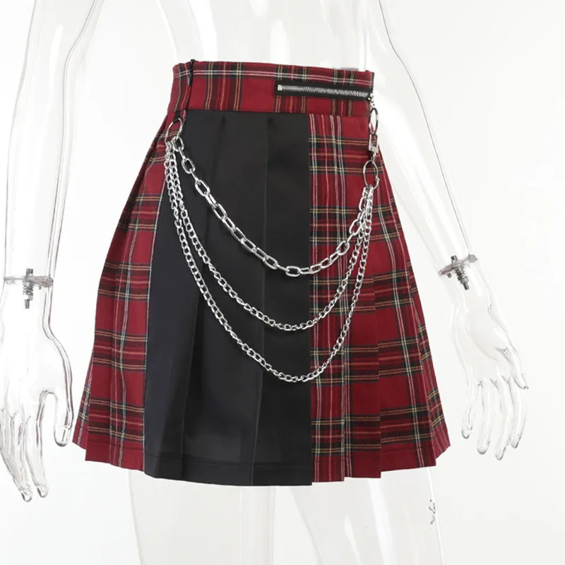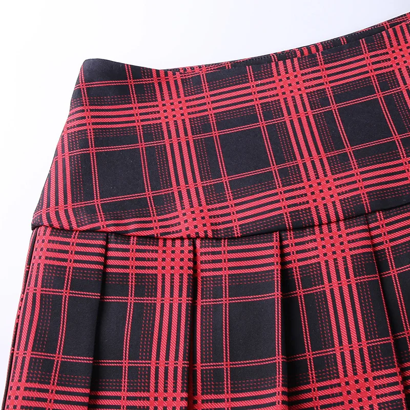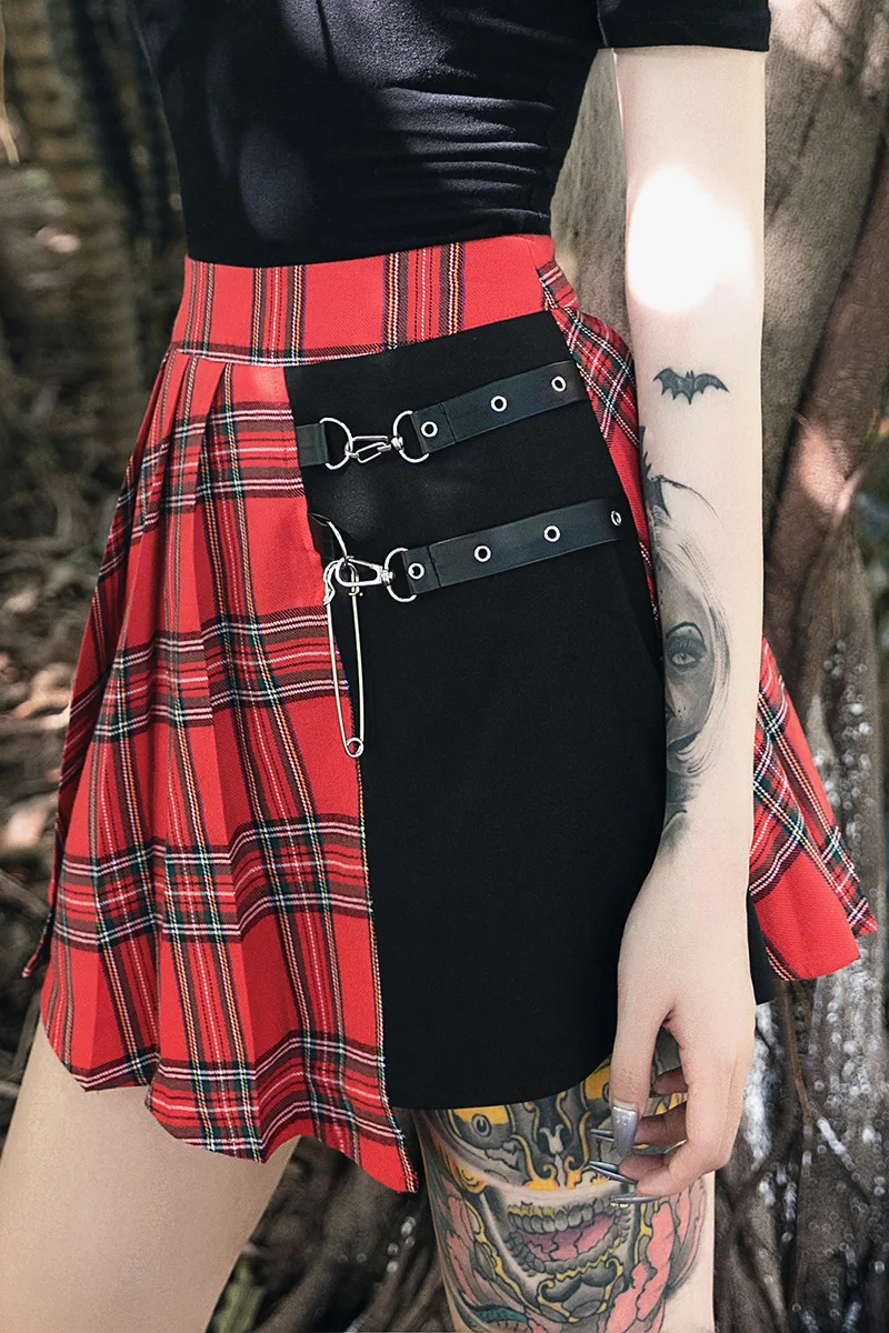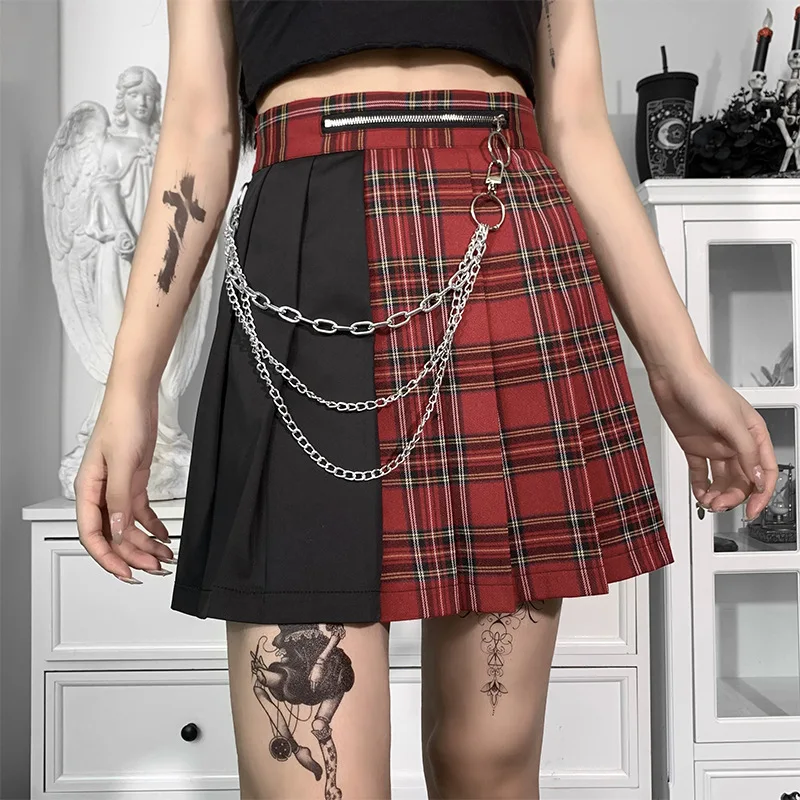 Cinto punk de retalhos vermelho xadrez saia goth vintage sexy jk a line saia plissada alta espera mini saia harajuku grunge y2k