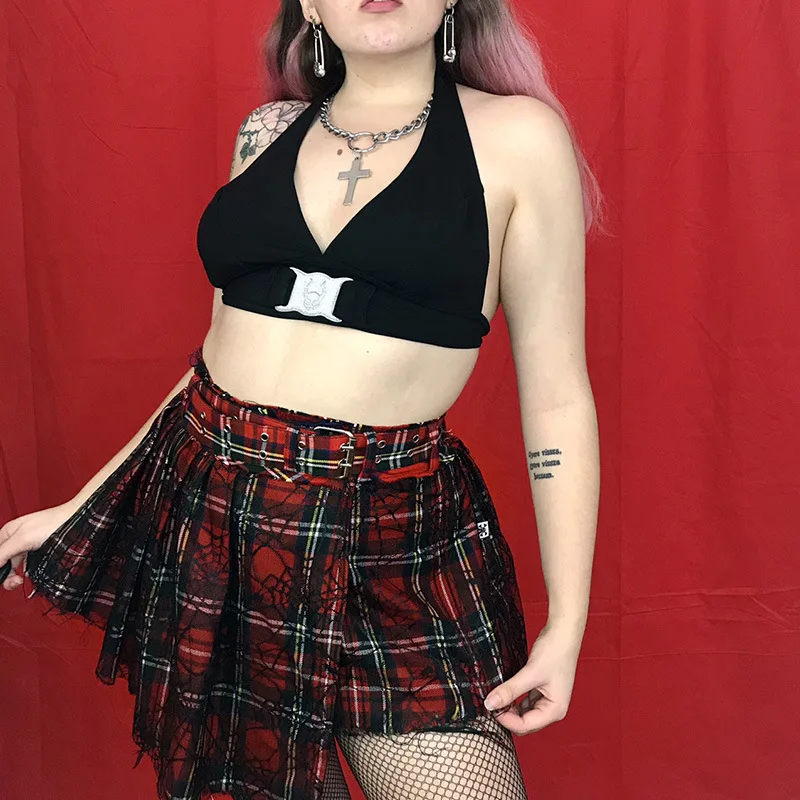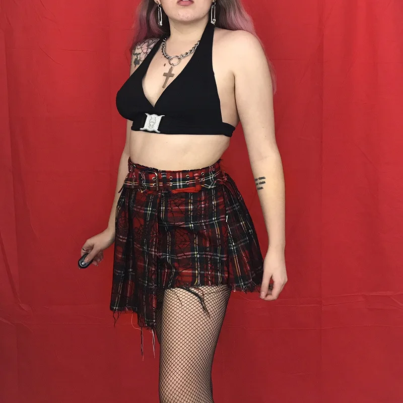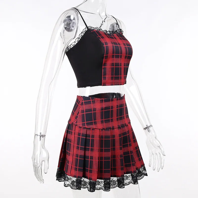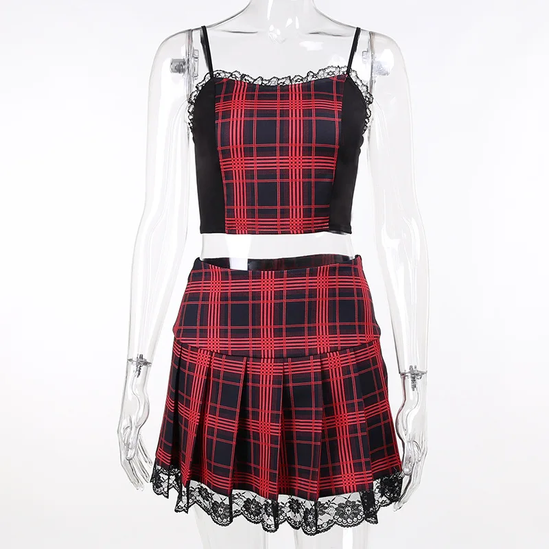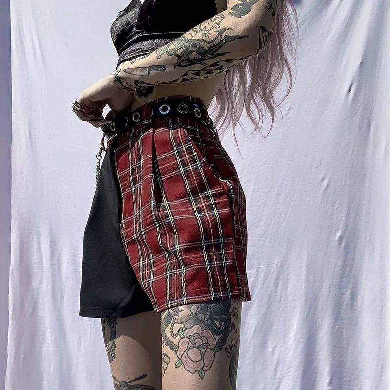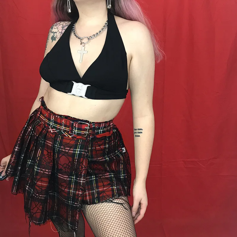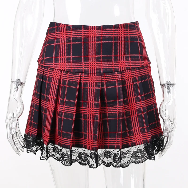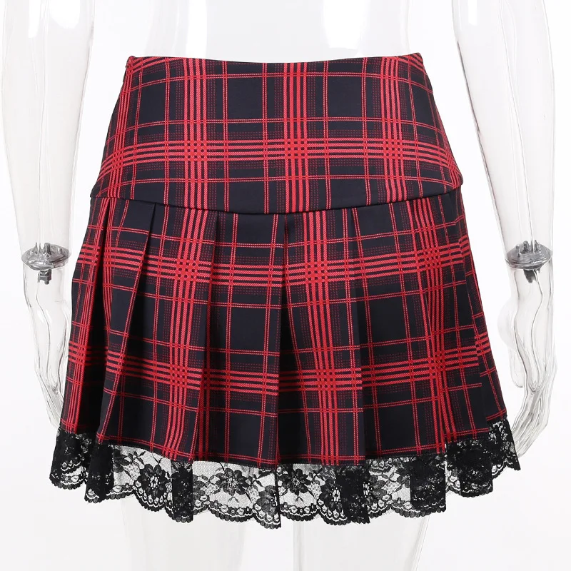 Cinto punk de retalhos vermelho xadrez saia goth vintage sexy jk a line saia plissada alta espera mini saia harajuku grunge y2k
